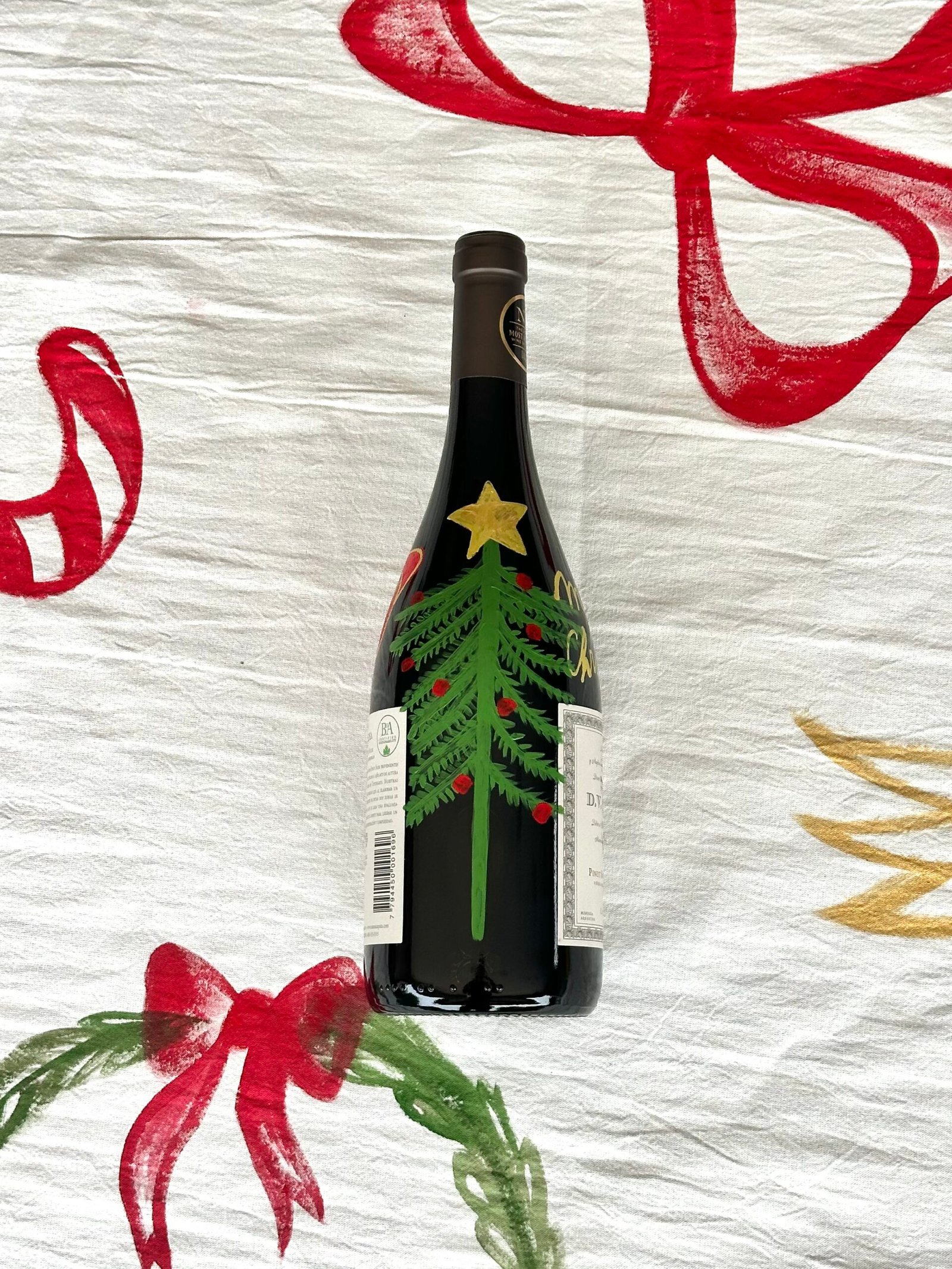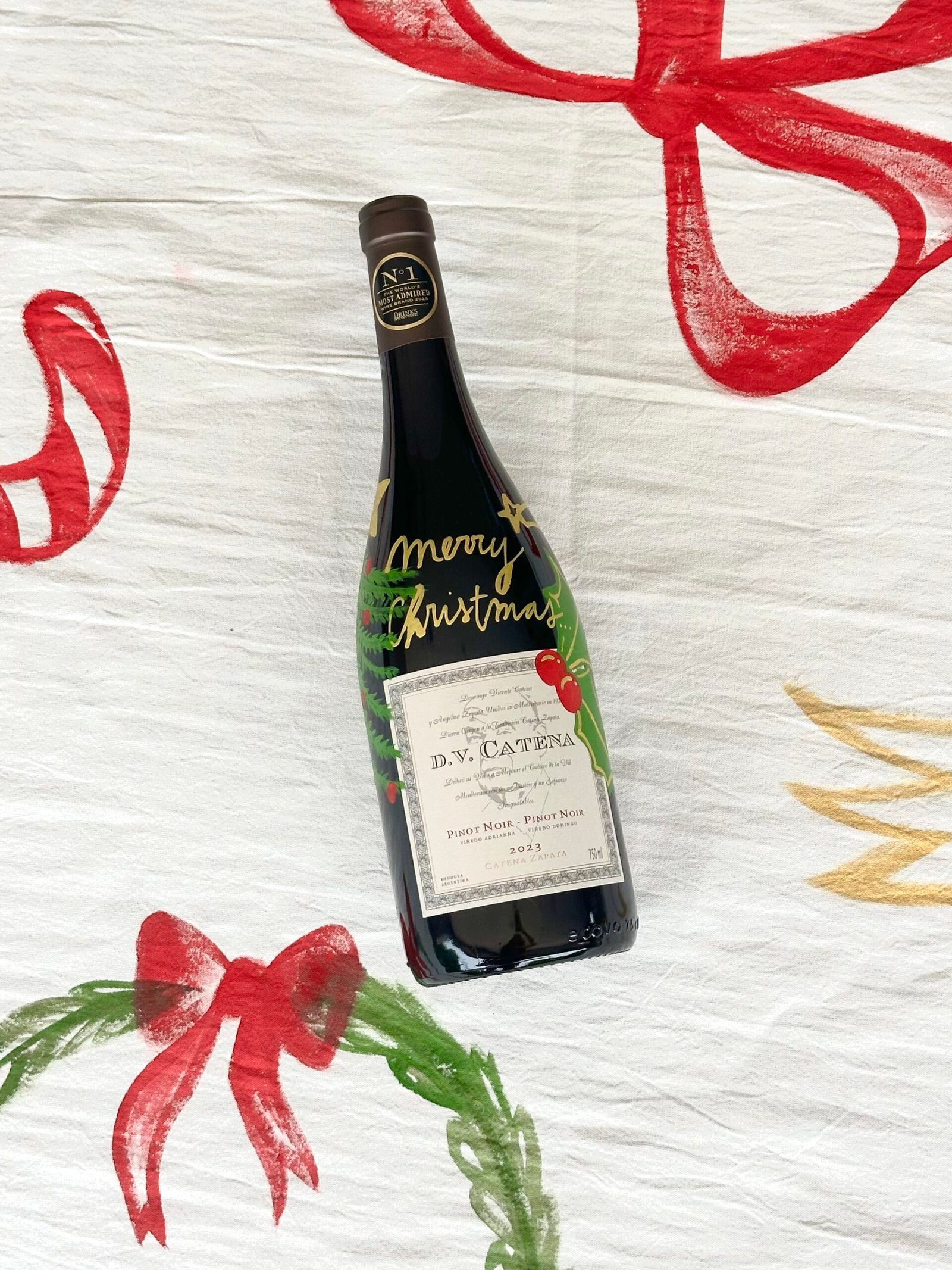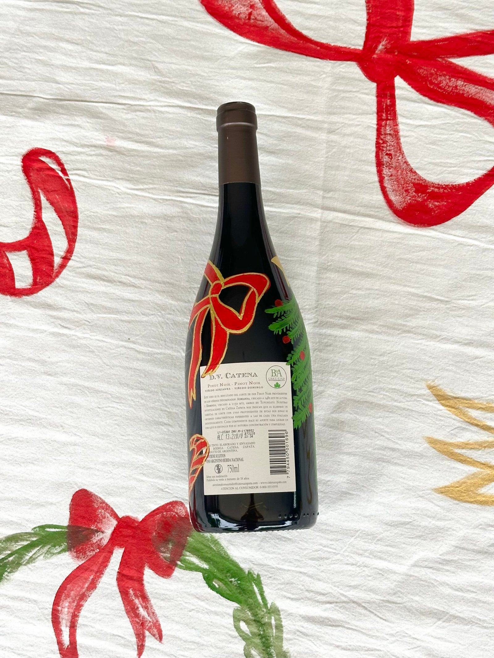 - Vino DV CATENA Pinot Noir pintado a mano con dibujos navideños